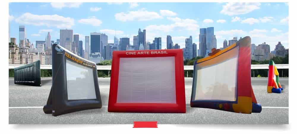Fabricamos Telas de Projeção Inflável. É uma alternativa flexível e econômica em comparação a um telão convencional. Devido à grande tela de projeção e à sua leveza, pode ser montadas até mesmo em locações sensíveis como é o caso de vários centros históricos. Do ponto de vista técnico, é constituída de uma moldura inflável feita de um PVC especial. Dentro desta moldura se encontra a tela de projeção A estabilidade da moldura é garantida através de uma bomba de ar, a qual garante a pressão de ar necessária dentro da moldura. Devido a um sistema de cordas e contrapesos a moldura tem uma fixação perfeita e agüenta até um vento força 5. Todos os nossos equipamentos são testados e certificados para a segurança dos nossos clientes. A montagem completa dura normalmente apenas uma hora e a desmontagem pode ser feita, dependendo do tamanho em apenas meia hora. A 3D Mídia Produz outros tamanhos e formatos de tela e moldura de acordo com o cliente. Faça seu pedido.